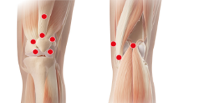 Bolesti mohou být způsobeny i traumaty či záněty šlach a vazů kolenního kloubu jako jsou tzv. entezopatie – onemocnění šlachových úponů. Při opakovaném přetěžování oblasti šlachových úponů dochází ke změnám chrupavčité zóny, vzniku nekróz a degenerace úponu. Následně dochází k novotvorbě přilehlé kosti a vzniku tzv. osteofytů. Hlavními faktory podílejícími se na vzniku entezopatií jsou nedoléčená traumata šlachových úponů, chronické přetěžování a opakovaná mikrotraumatizace úponu šlachy.